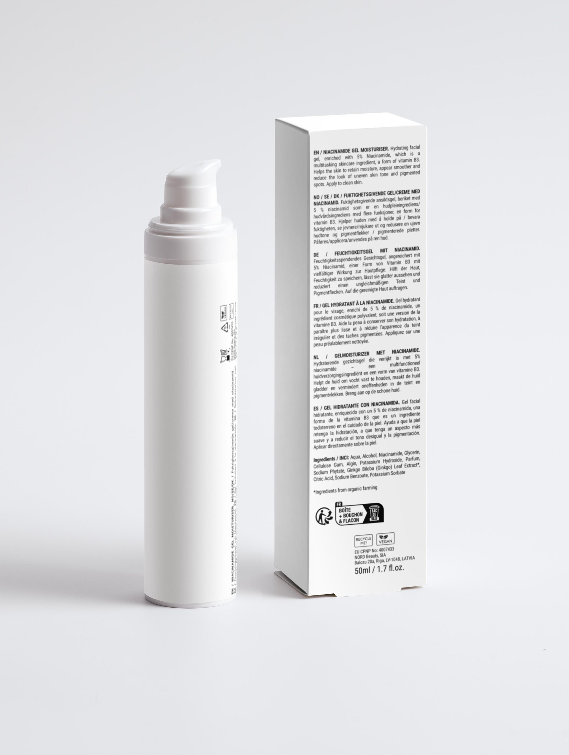 Niacinamide, Ginkgo Leaf Extract, Algin